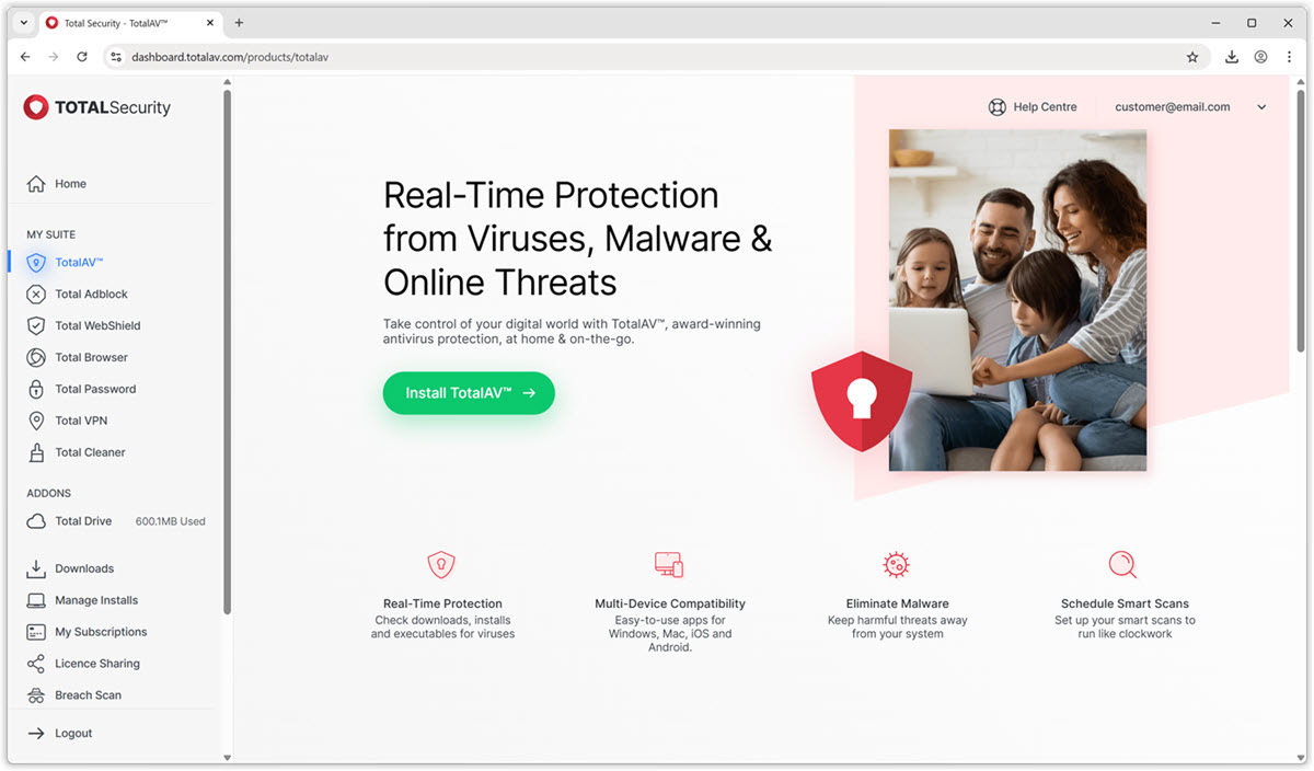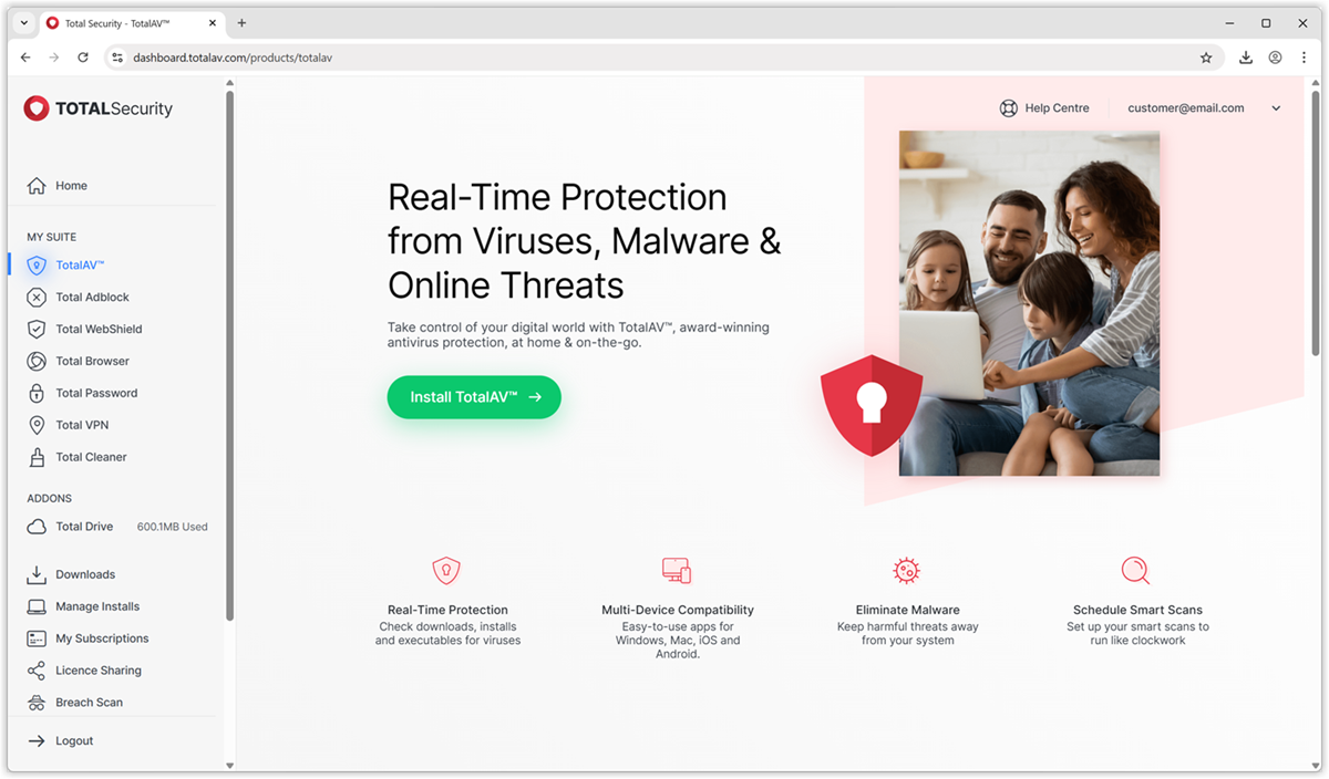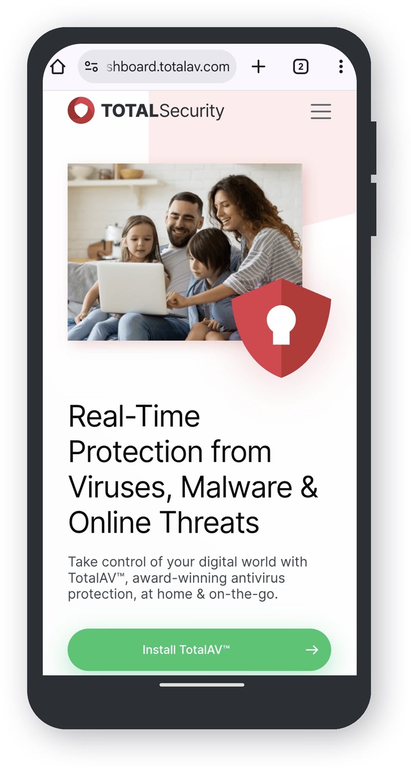 Para descargar TotalAV, deberá dirigirse a su Portal en línea e instalarlo haciendo clic en el botón Instalar TotalAV.