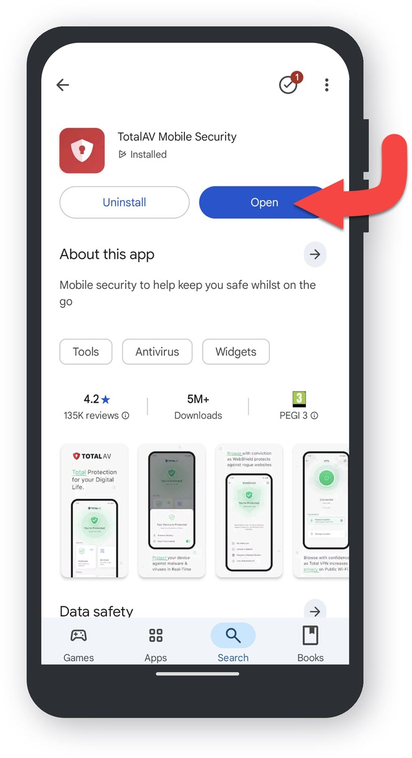 Si no puede acceder a su Portal en línea, busque nuestro botón de descarga directa para TotalAV. Esto le llevará directamente a Google Play Store: