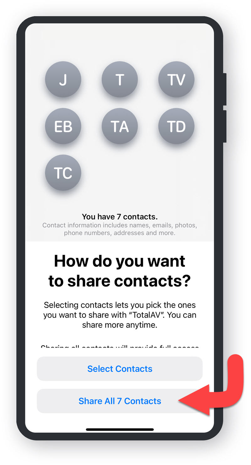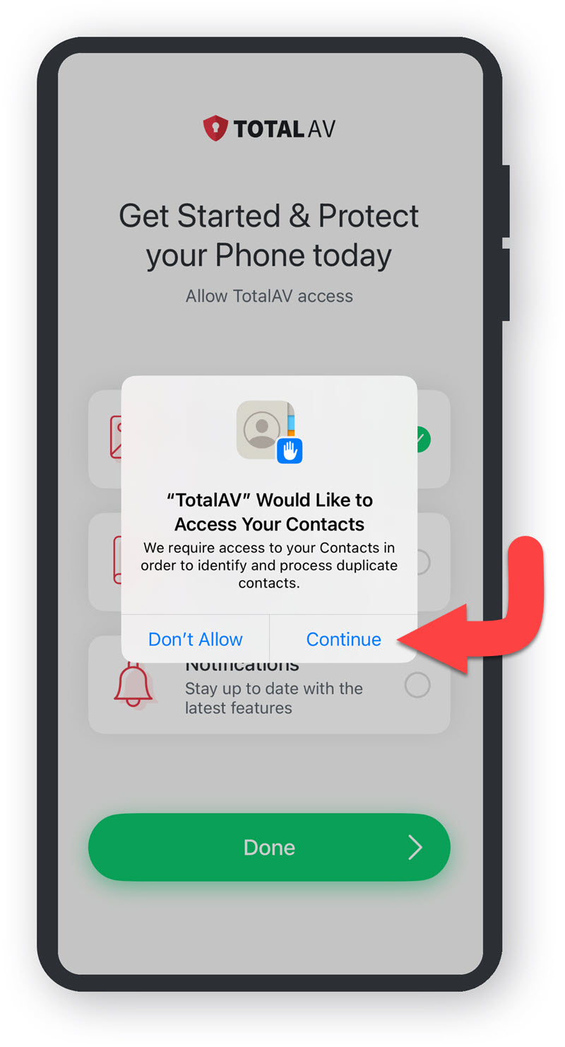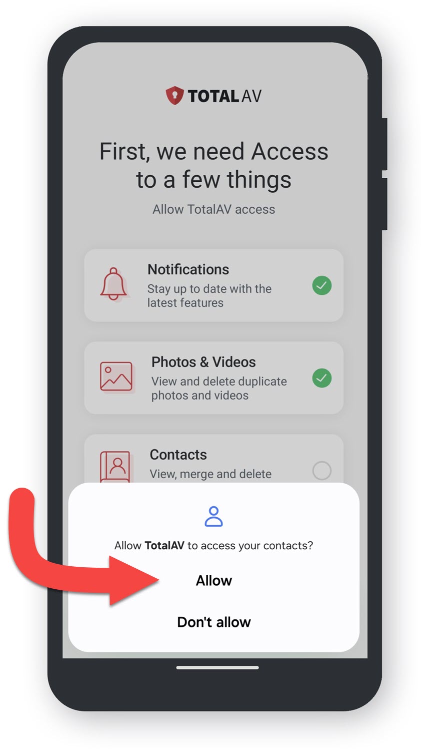 • Toca Permitir para que TotalAV pueda tener acceso a tus contactos.
