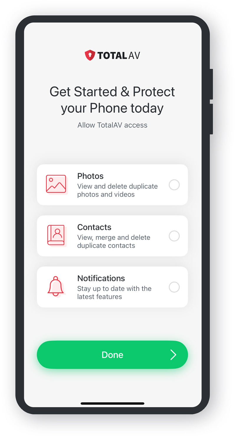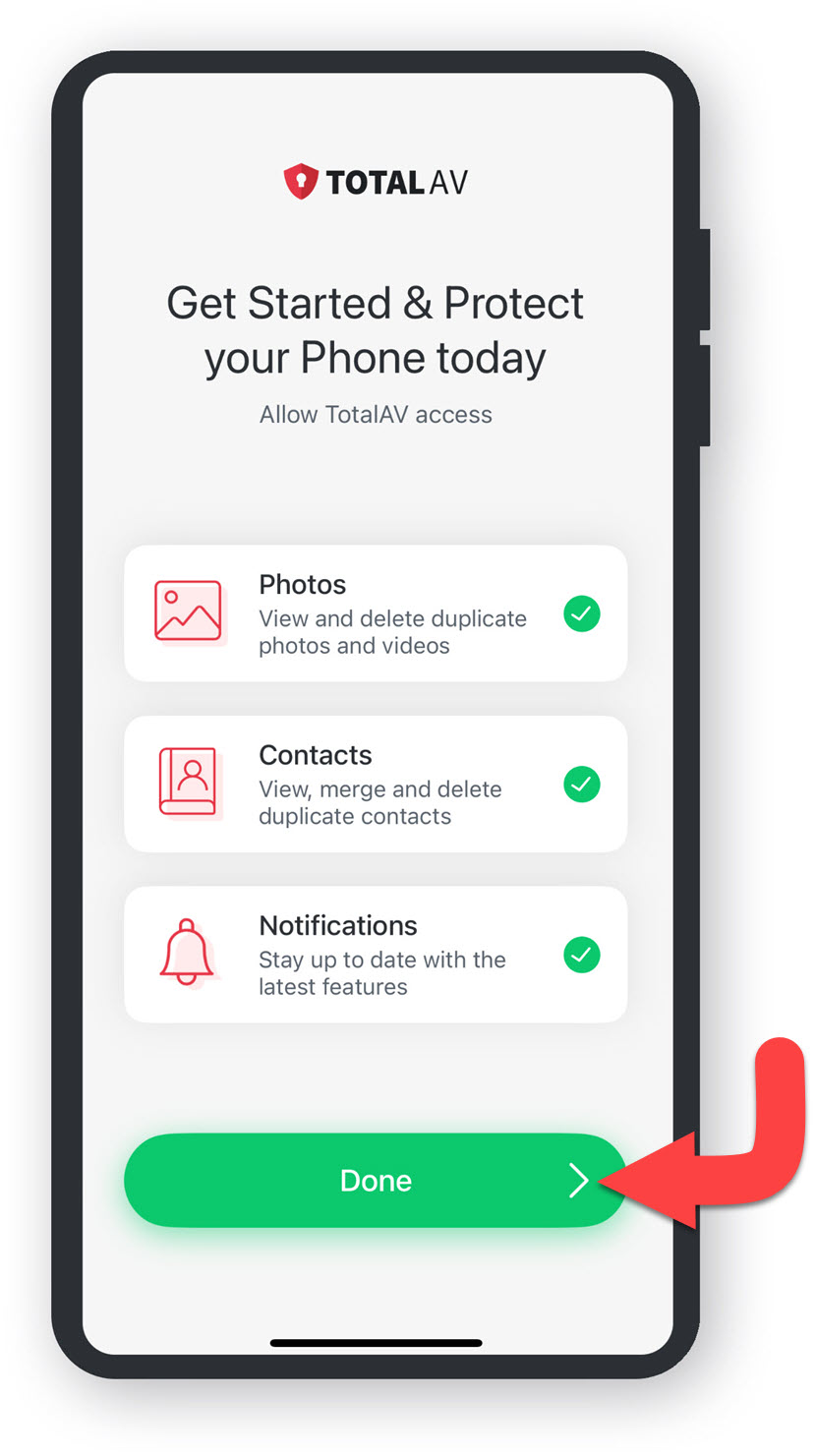 Nota: TotalAV requiere permisos en tu iPhone o iPad para permitir que funciones como Herramientas de limpieza y Notificaciones funcionen correctamente.