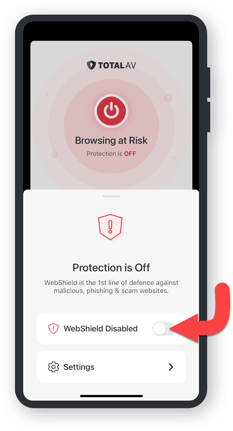 • Toque el interruptor para habilitar TotalAV Webshield.