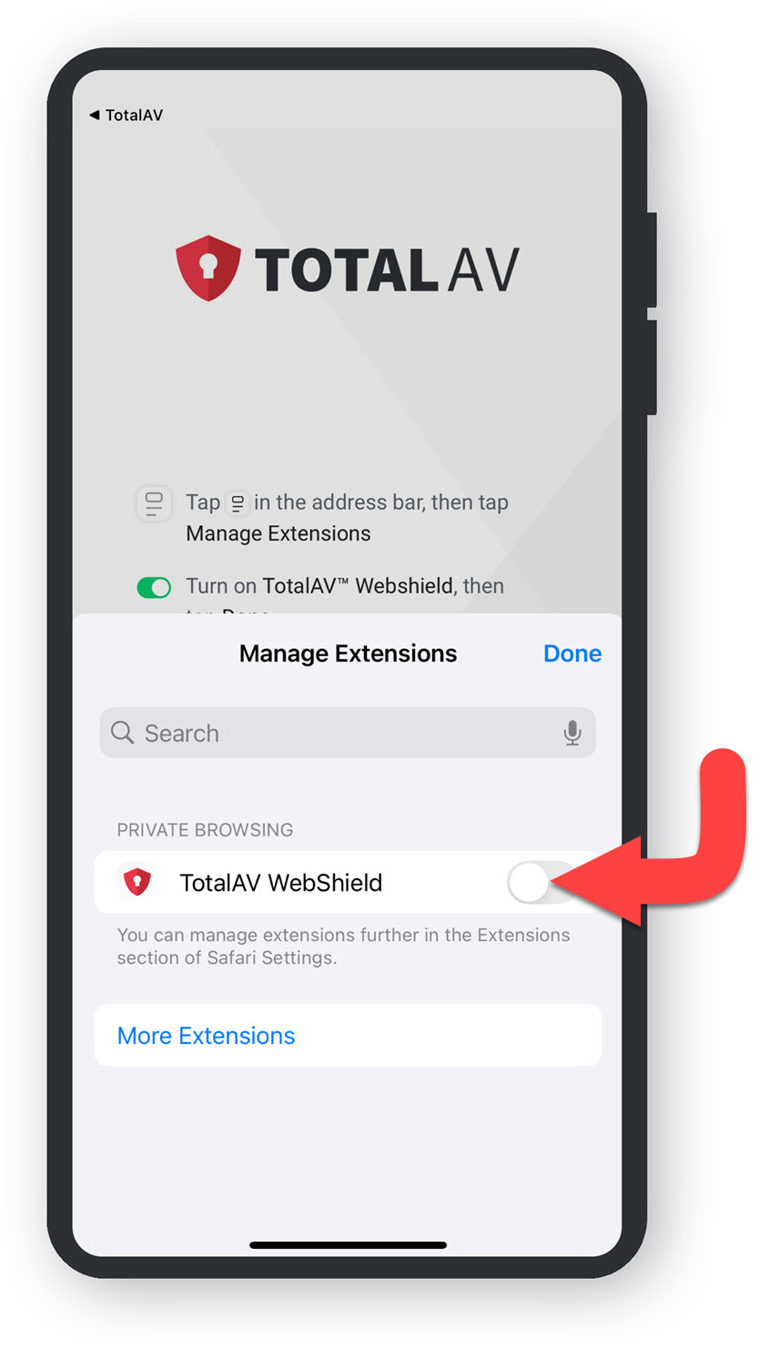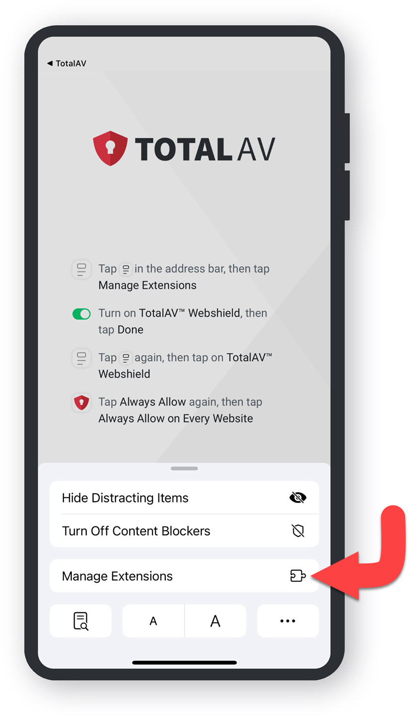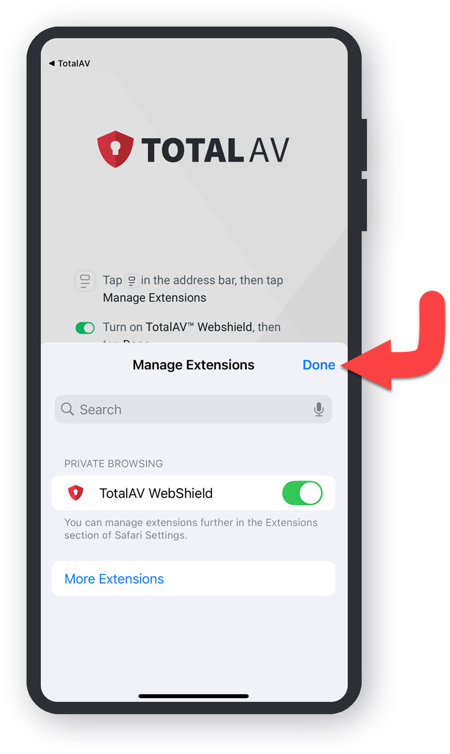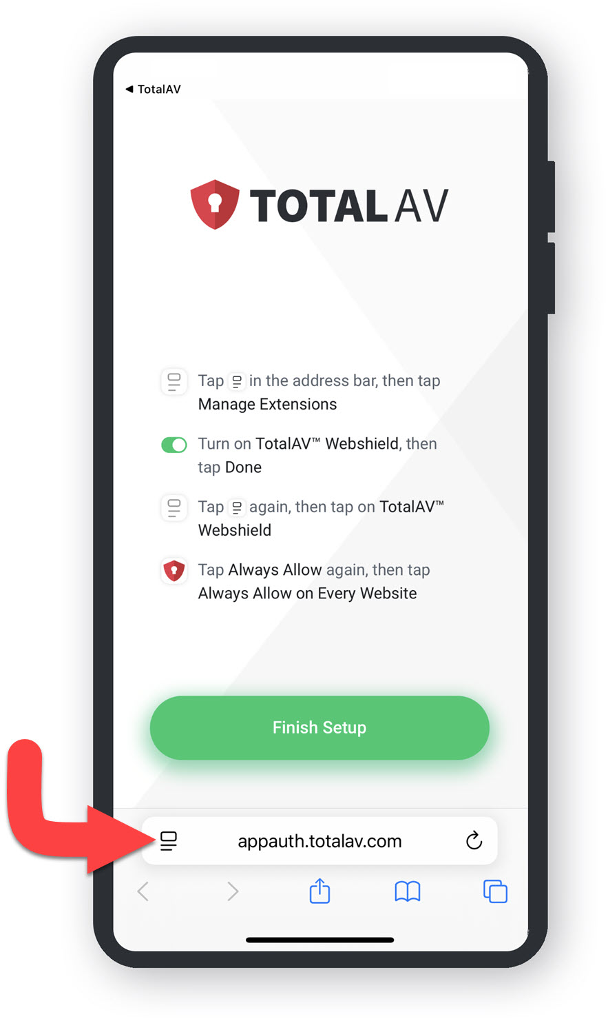 • Se abrirá una nueva ventana con los pasos sobre cómo activar TotalAV Webshield, toque Abrir Safari para comenzar.