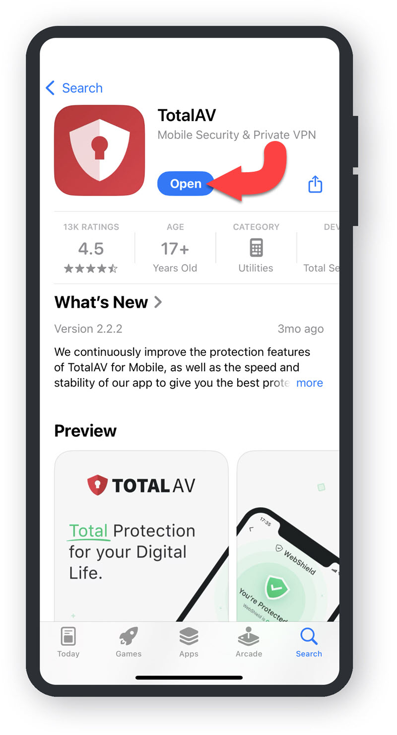 Si no puede acceder a su Portal en línea, busque nuestro botón de descarga directa para TotalAV. Esto le llevará directamente a Apple App Store: