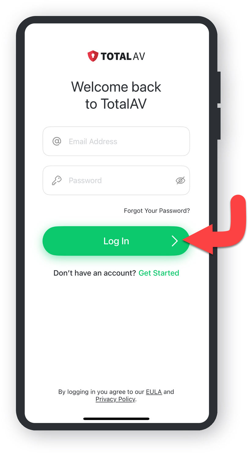 Ingrese sus datos de inicio de sesión de TotalAV y toque Iniciar sesión.