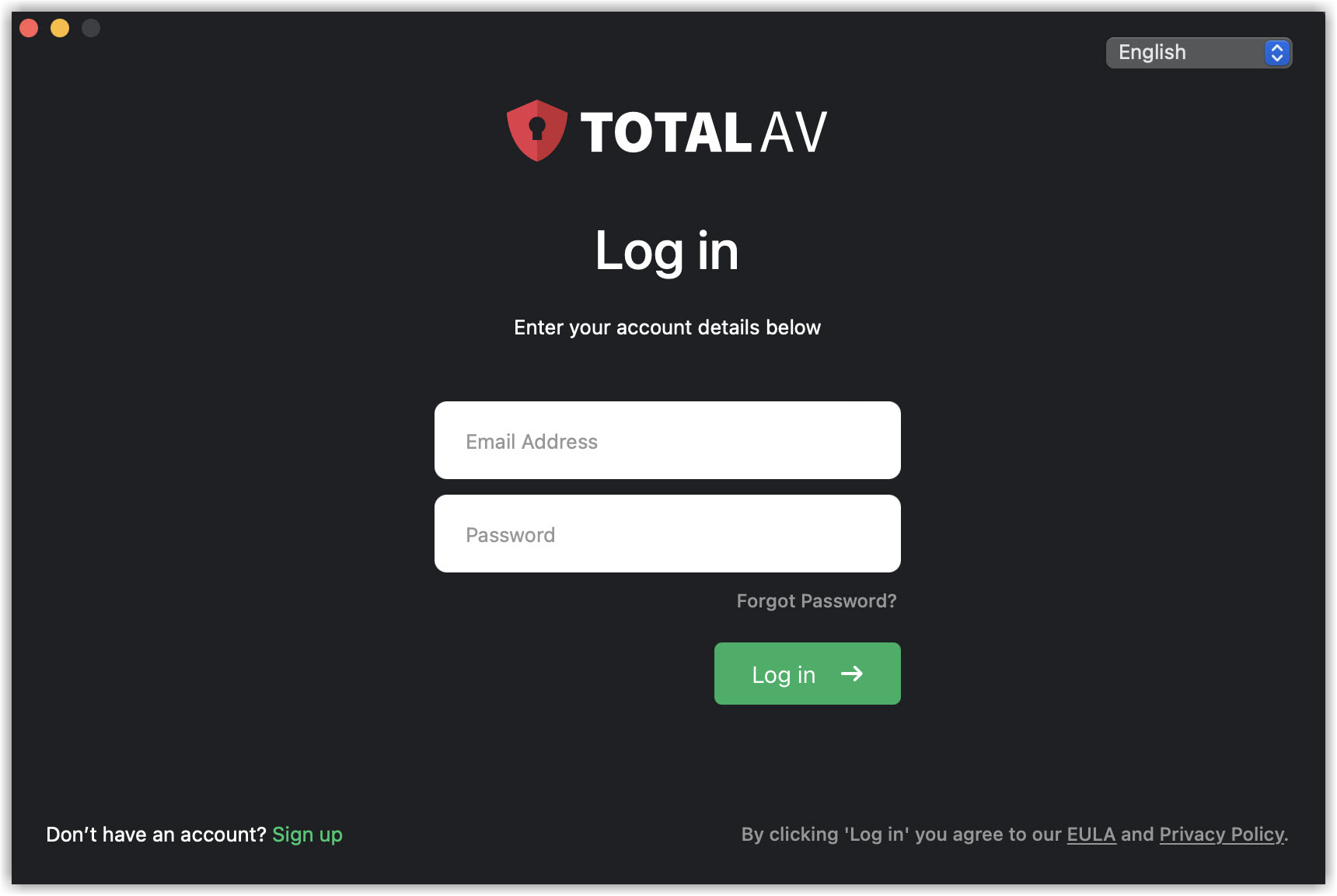 Ingrese sus datos de inicio de sesión de TotalAV y haga clic en Iniciar sesión.