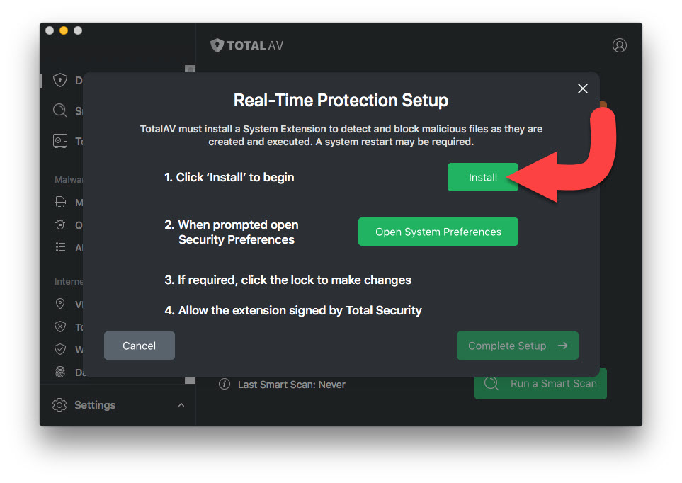 • Haga clic en Instalar, en la ventana de configuración TotalAV recién abierta.