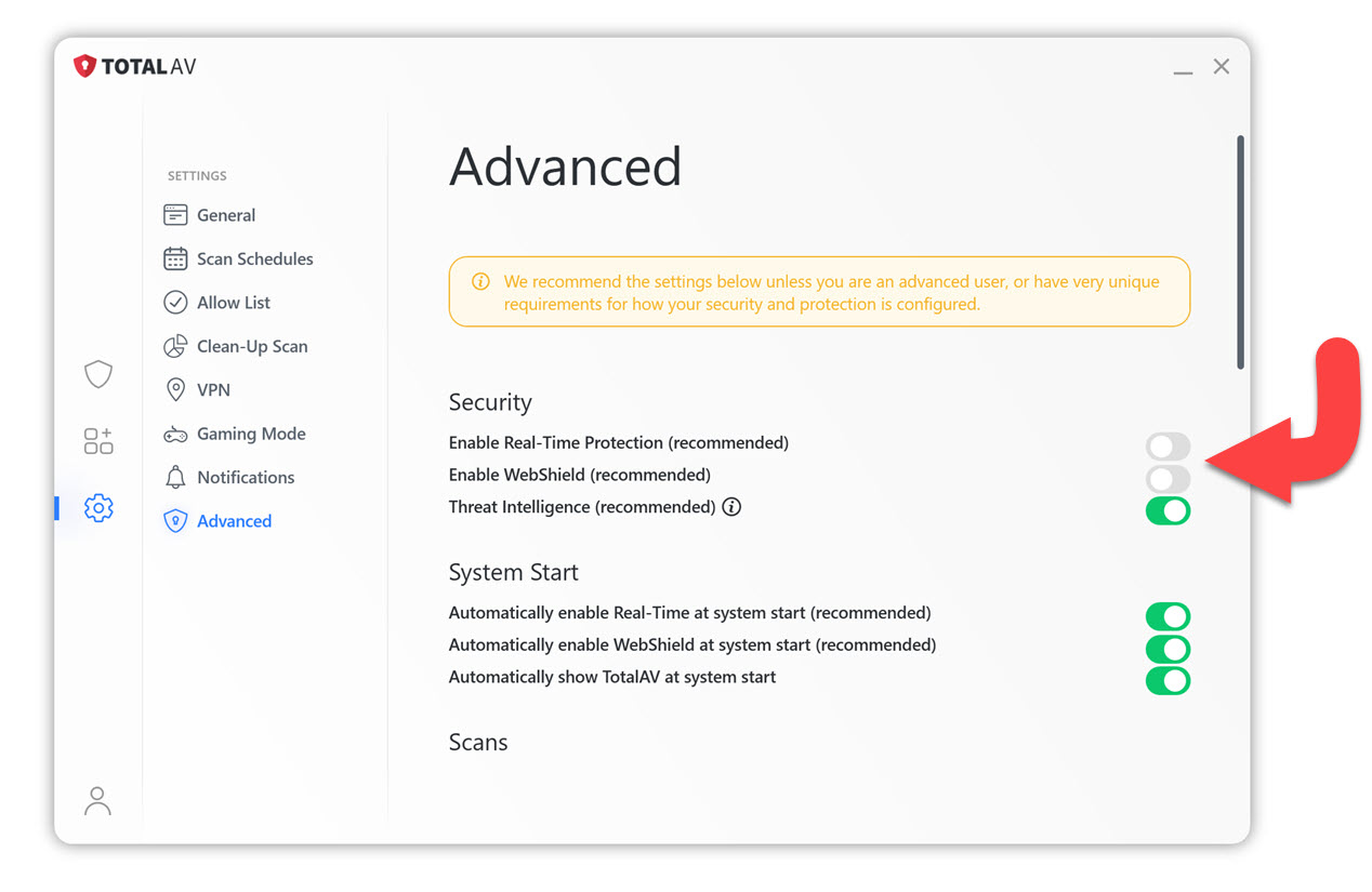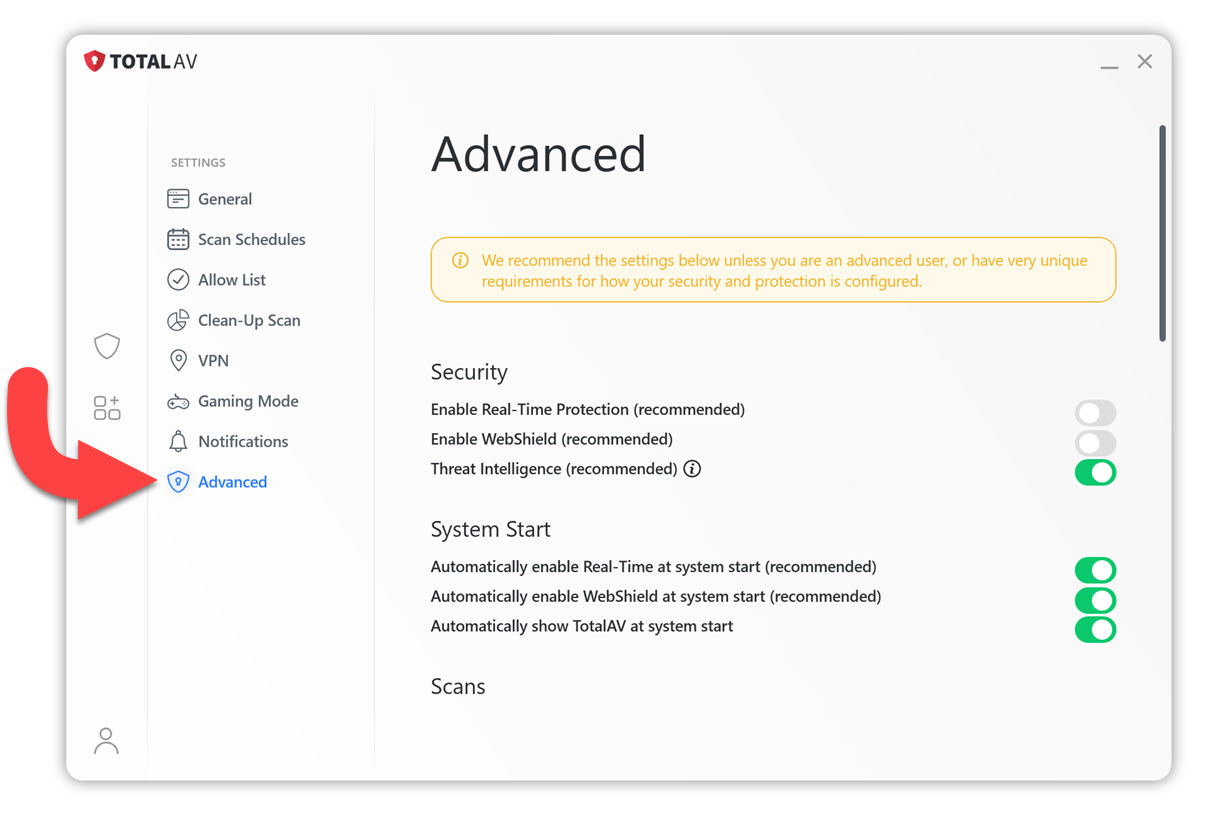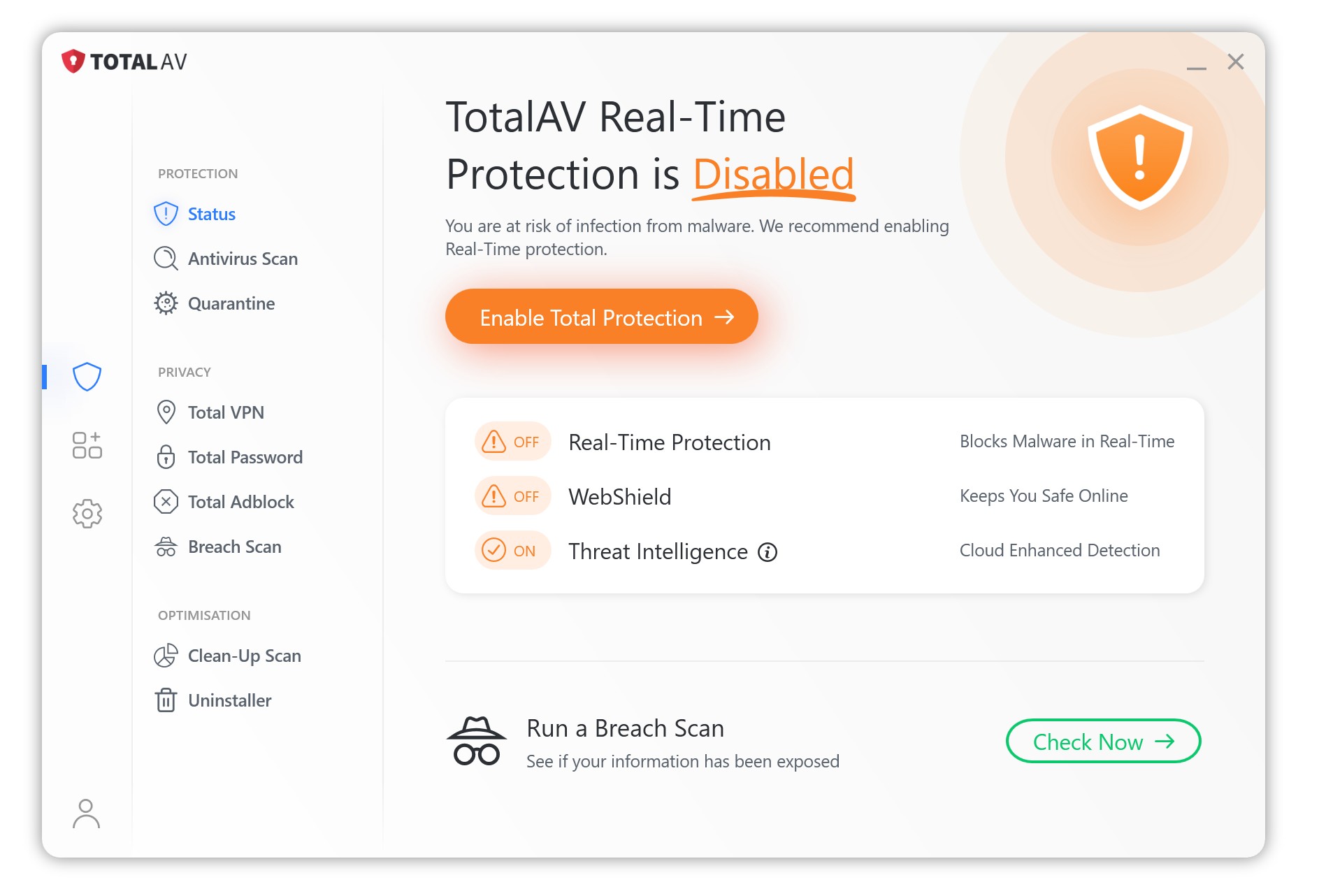 Una vez que haya instalado TotalAV, deberá habilitar Protección en tiempo real para protegerse de amenazas en tiempo real.