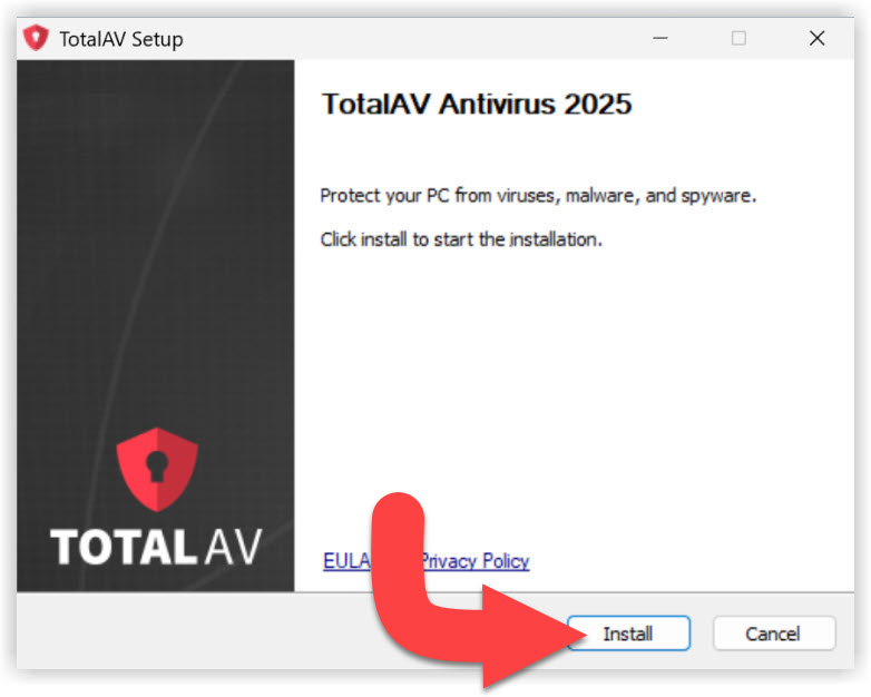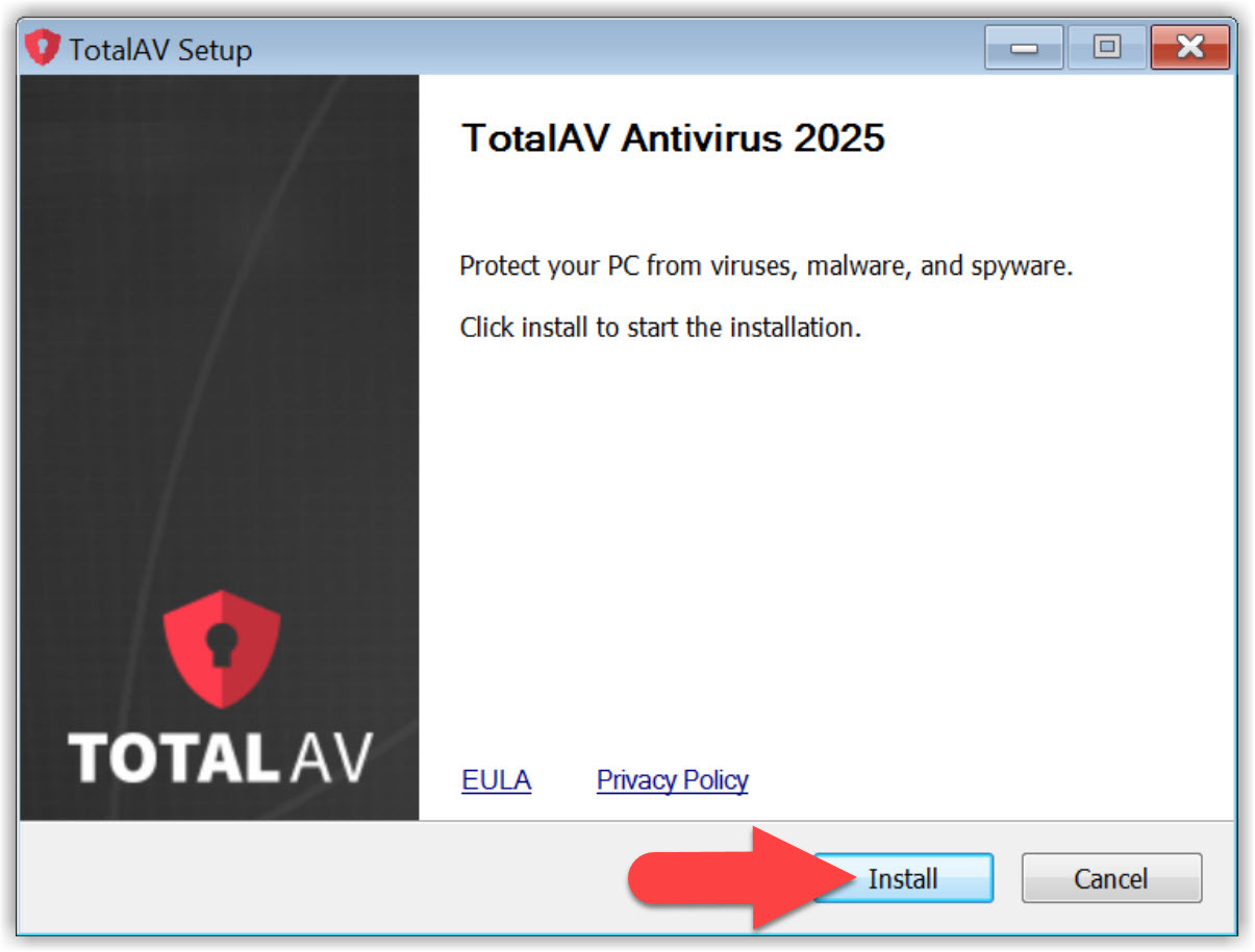 Cuando se abra la ventana de instalación de TotalAV, haga clic en Instalar.