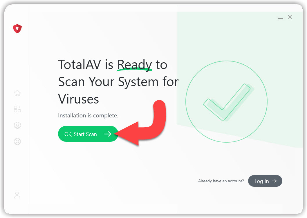 Si desea iniciar sesión antes de continuar con el escaneo, haga clic en Iniciar sesión para activar la aplicación TotalAV.